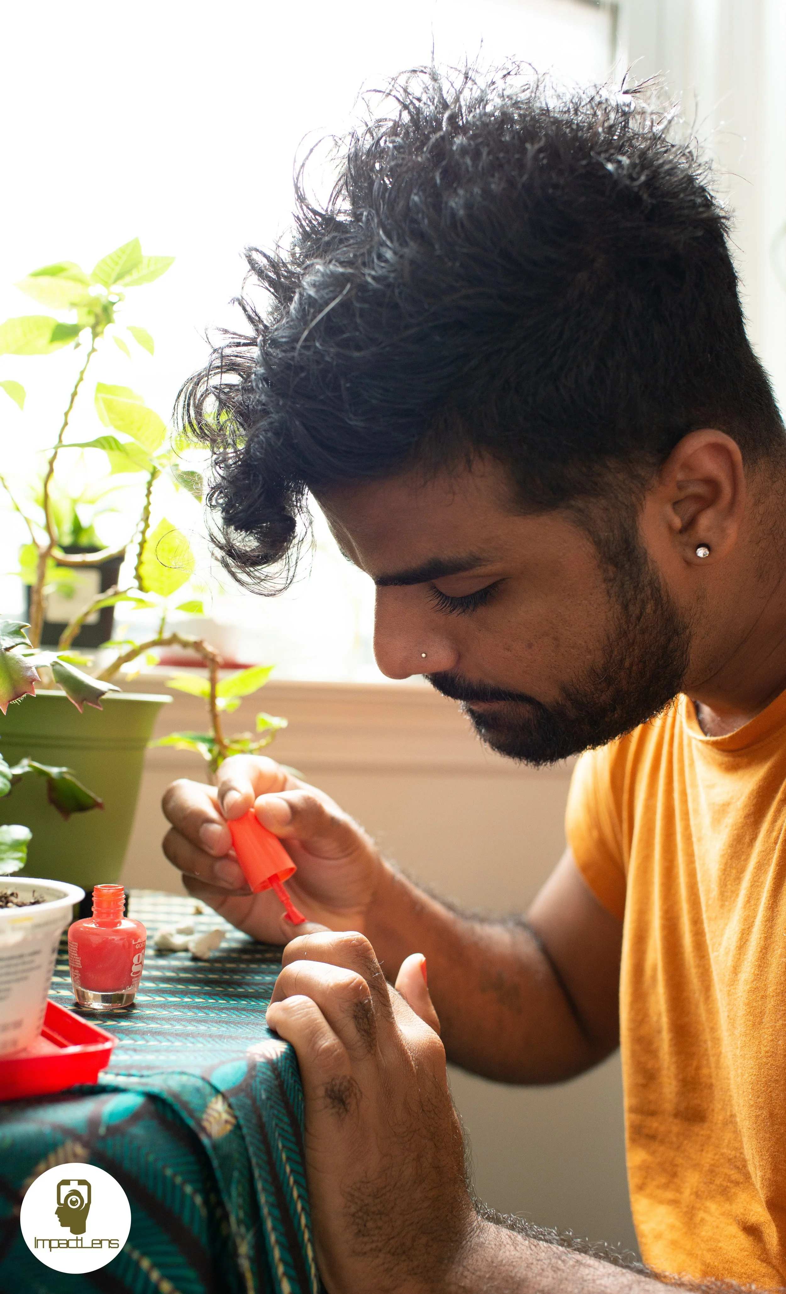 Starting here allows you to meet Mani doing simple things to relax on a Sunday afternoon. Painting their nails by a sunny window. Cooking a quick Indian lunch of masala beans, daal, and rice. And finally settling in to color some “rangoli.” In a patriarchal society, all these are typecast as girly things that men shouldn’t do. But doing what brings us joy doesn’t need to be defined by gender or social norms.